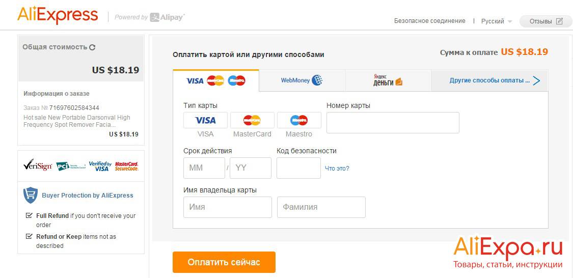 Вот и всё. Уже в следующий раз у Вас будет привязана новая карта для совершения покупок на торговой площадке Алиэкспресс.