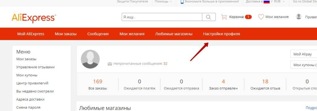 - На вкладке «Мой профиль» щёлкните по надписи «Мой aliexpress»;