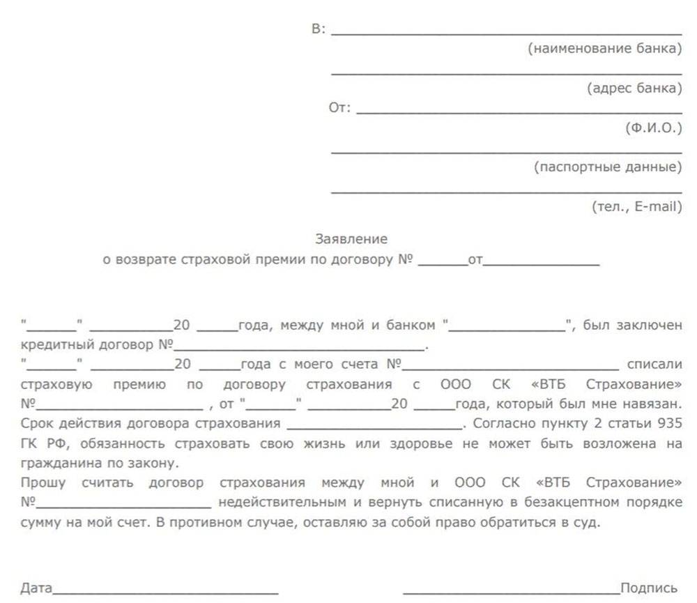 Желательно, чтобы в обращении были ссылки на статьи Гражданского Кодекса, позволяющие получить часть внесенной премии. Оптимально, если заявление проверит юрист — такой подход минимизирует вероятность получить отказ по обращению.