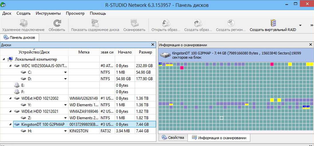 Если файл с приватными ключами удален и резервной копии нет, а все данные хранились только на жестком диске ПК, то можно попробовать утилиты для восстановления данных. Например, программу R-Studio. С ее помощью можно восстановить жесткий диск целиком или отдельные файлы, в зависимости от степени повреждения накопителя. После установки утилиты (доступна бесплатная демо-версия с ограничением на объем восстанавливаемых данных) нужно выбрать диск и начать сканирование.