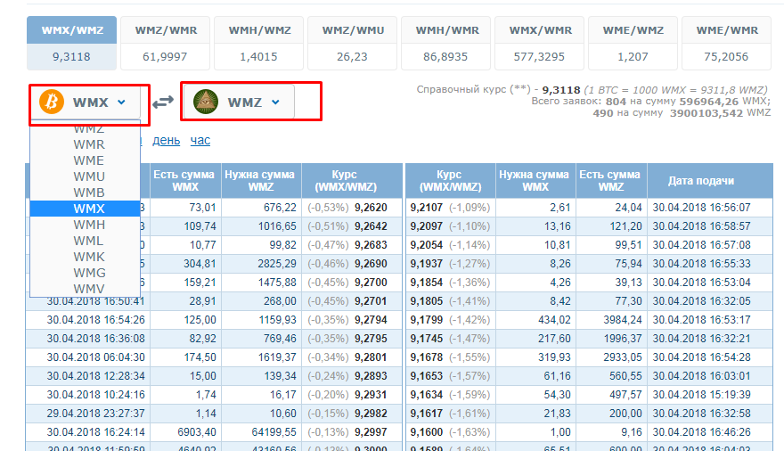 Если вам необходимо совершить обмен, например, WMX на WMZ (биткоины на доллары), то делать это удобно на партнерском сайте wm.exchanger.ru.