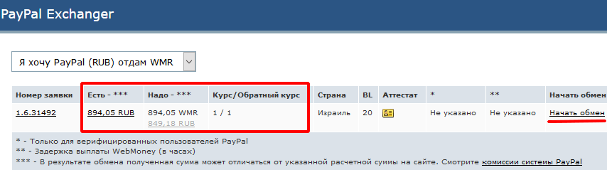 - В колонке курс указаны пропорции обмена. При небольшой доле везения, вы сможете обменять ваши Вебмани по ставке 1к1.