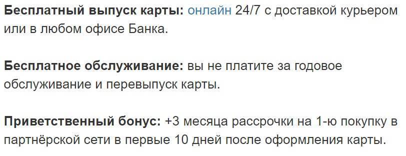 Вы недавно открывали карту? Поздравляем, вам дается приветственный бонус на первую покупку в течение 10 дней с момента открытия карточки. Если вы совершаете покупку в партнерской сети, то вам дадут + 3 месяца рассрочки к тому периоду, который определит продавец.