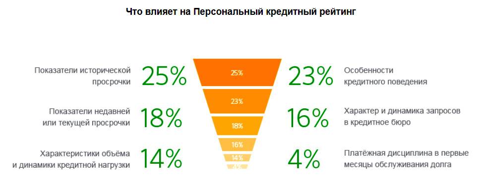 Все вышеперечисленные показатели лягут в основу Вашего персонального кредитного рейтинга. Рейтинг позволяет судить о безупречности Ваших отношений с банками, и, если это нужно, покажет необходимость улучшения Вашей истории в целях получения в дальнейшем более выгодных условий.