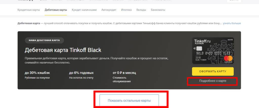 Больше информации по картам можно узнать на официальном сайте банке здесь: https://www.tinkoff.ru/cards/debit-cards/.