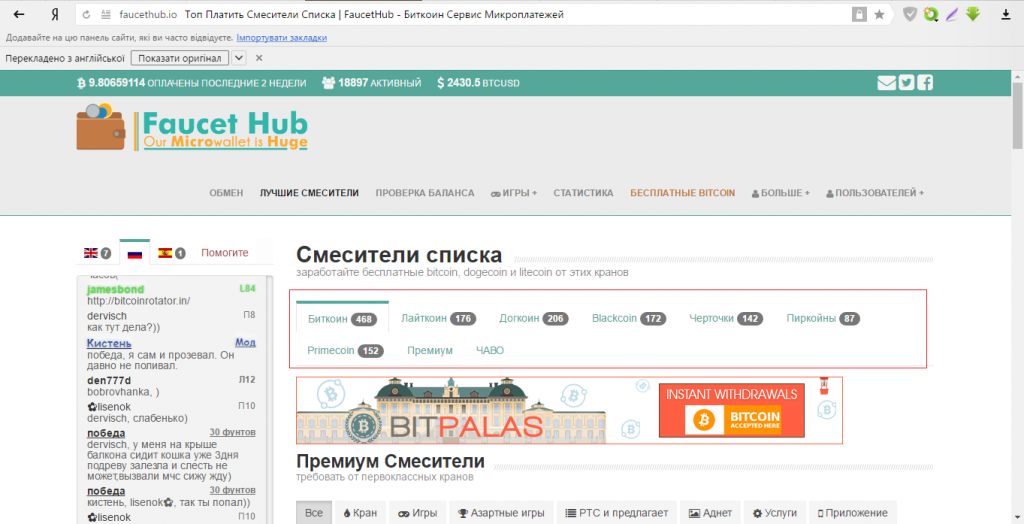 Сайт зарубежный, поэтому воспользуйтесь автоматическим переводчиком. Заходим на вкладку «лучшие смесители», перед нами откроется множество кранов, дающих награду за различные действия: разгадывание капчи, просмотр рекламы, игры и т. д. — для каждой валюты свои краны