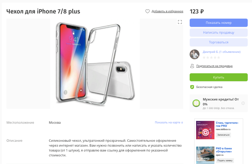 Моделируйте объявления, которые продают аналогичные товары в других городах. Выпишите лучшие формулировки и составьте из них свое собственное убойное продающее объявление.