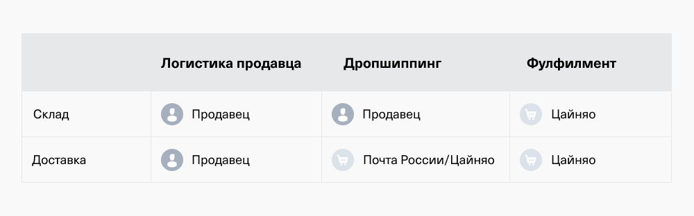 При логистике продавца он берет хранение, упаковку и доставку на себя: можно доставлять своими силами, Почтой России или любой другой транспортной компанией. Тут доставка будет по тарифам транспортной компании: нужно или закладывать ее в стоимость товара на площадке, или покупатель будет оплачивать ее отдельно.