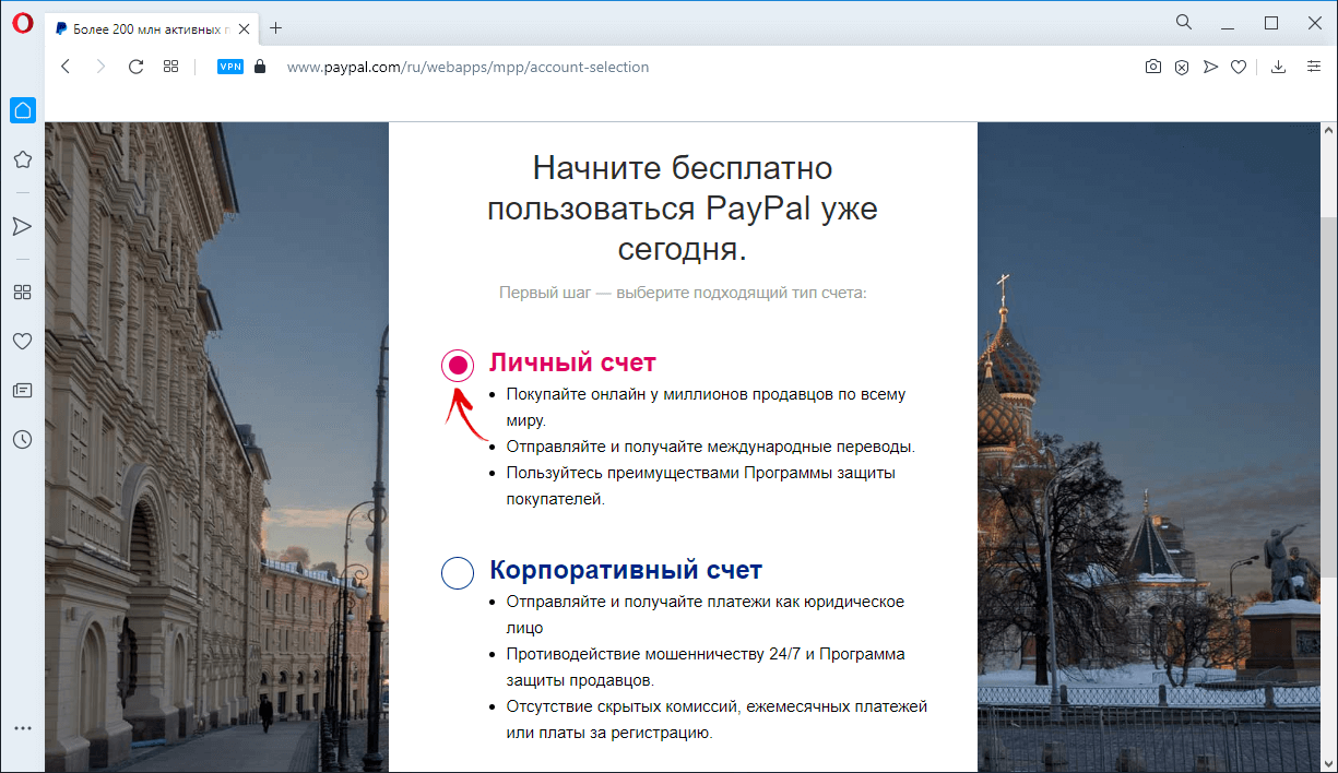 - Указать тип учетной записи — личный счет или корпоративный. В случае регистрации профиля для организаций потребуется предоставить дополнительную информацию.
