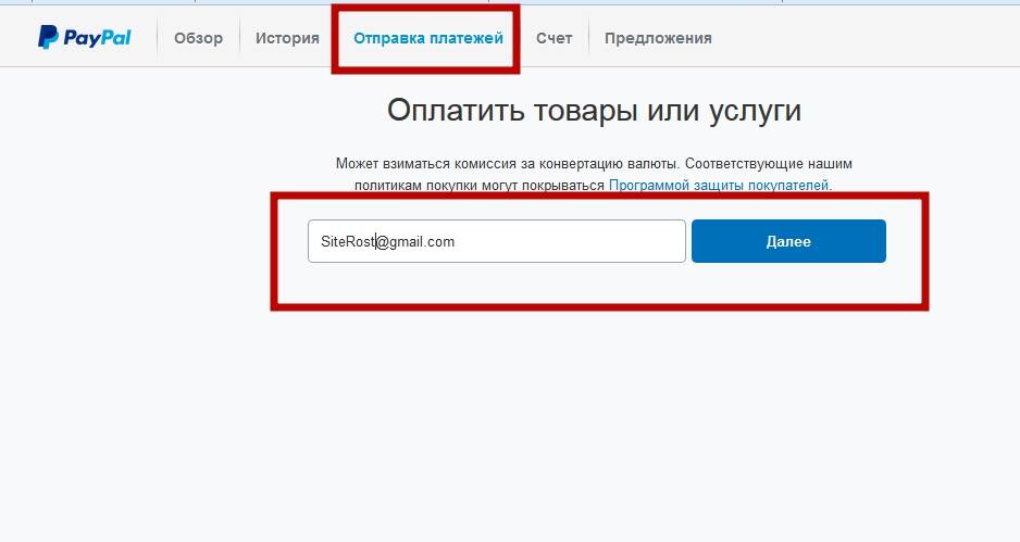 Легкость и удобство системы электронный платежей PayPal заключается в том, что для совершения перевода нам нужно знать только электронный почтовый ящик получателя. Ничего другого для перевода или платежа нам не требуется.