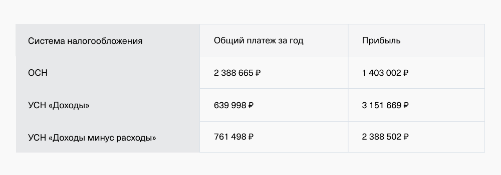 Пример сравнения налоговой нагрузки на разных режимах для ООО