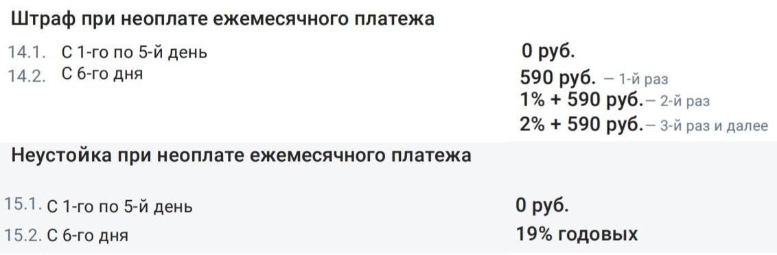 Однако наибольший минус заключается в том, что в случае просрочки платежа активируется процентная ставка в размере 36% годовых