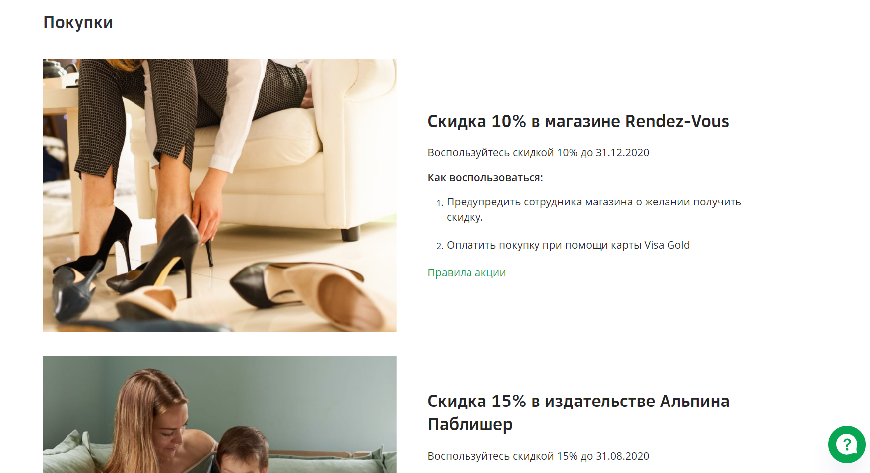 Список привилегий регулярно обновляется в зависимости от предложений партнеров. До конца 2020 года Владельцам пластика «Visa Gold» открывается доступ к следующим скидкам: