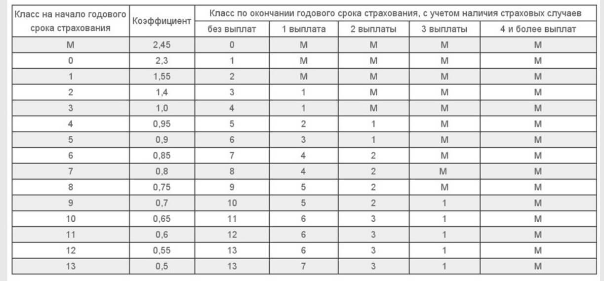 Так называемый «бонус-малус» рассчитывать сложнее всего. Он зависит от страховых случаев, с которыми вы столкнулись. Сначала у вас «безаварийный» коэффициент. А дальше уже смотрите по таблице: