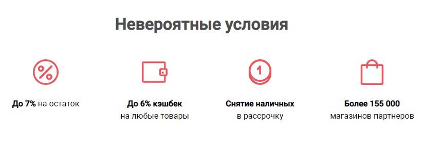 Один раз в 30 дней нужно вносить минимальные платежи до окончания периода рассрочки. Также можно вернуть кэшбэк до шести процентов на любые товары. Снимать деньги можно в банке с удержанием комиссии. Это не выгодно, поэтому рекомендуется совершать приобретение.