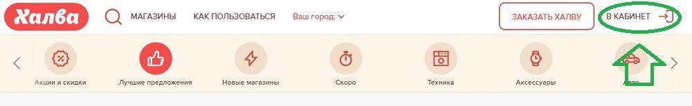 Чтобы войти в онлайн-банкинг, посетите официальный портал программы halvacard.ru. Далее нажмите кнопку «Вход». На скриншоте ниже расположение ссылки показано наглядно:
