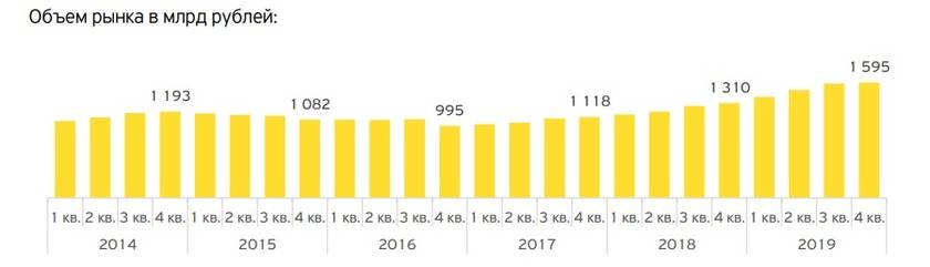 2019: Объем российского рынка кредитных карт вырос на 21,8% до 1,595 трлн рублей