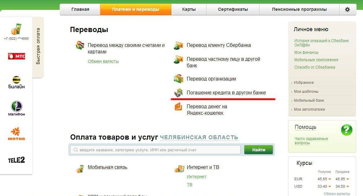 В Сбербанке легко погашать и кредиты, оформленные в других организациях. Заходим в электронную систему, используем такую последовательность: