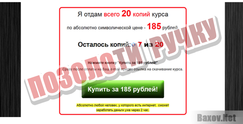 Сколько же стоит чудо-курс? Всего 185 рублей. Но нужно поторопиться. Предложение ограничено. Осталось 7 копий из 20. Шучу. Никуда торопиться не нужно. Если до завтра этот лохотрон доживёт, свободные копии всё ещё будут в наличии.