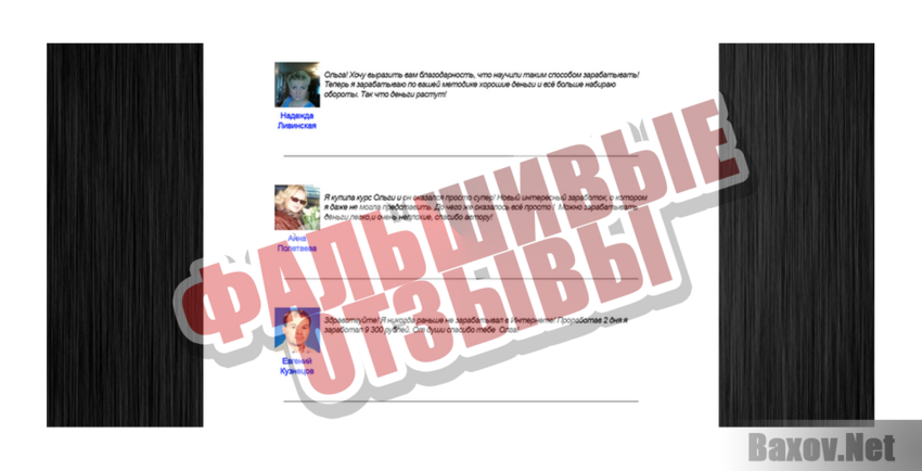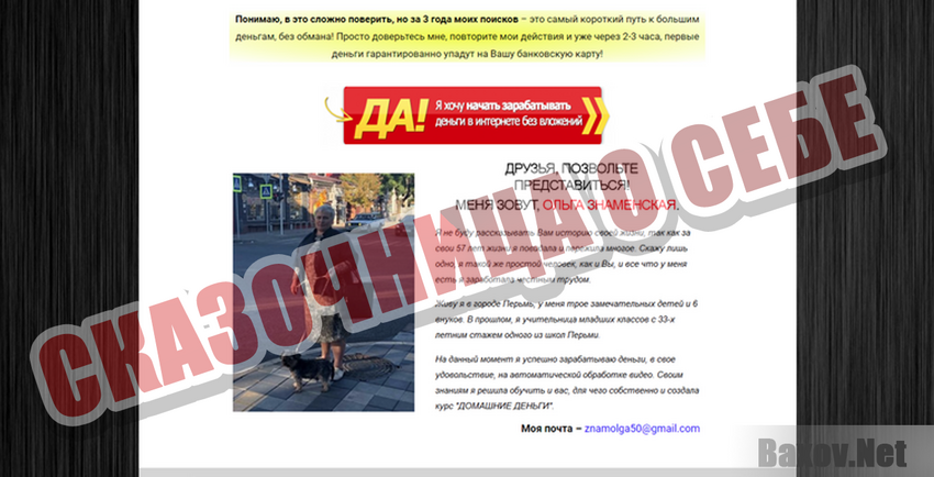 Ольга Знаменская или как там её зовут на самом деле – мошенница. А её курс – ахинея. Женщина утверждает, что заработок происходит за счёт автоматической обработки фото и видео. За это вам якобы будут платить деньги – сотни, а то и тысячи рублей. В интернете полно ресурсов, которые автоматически бесплатно выполняют эту работу. Зачем за неё платить? А значит Ольга лжёт.