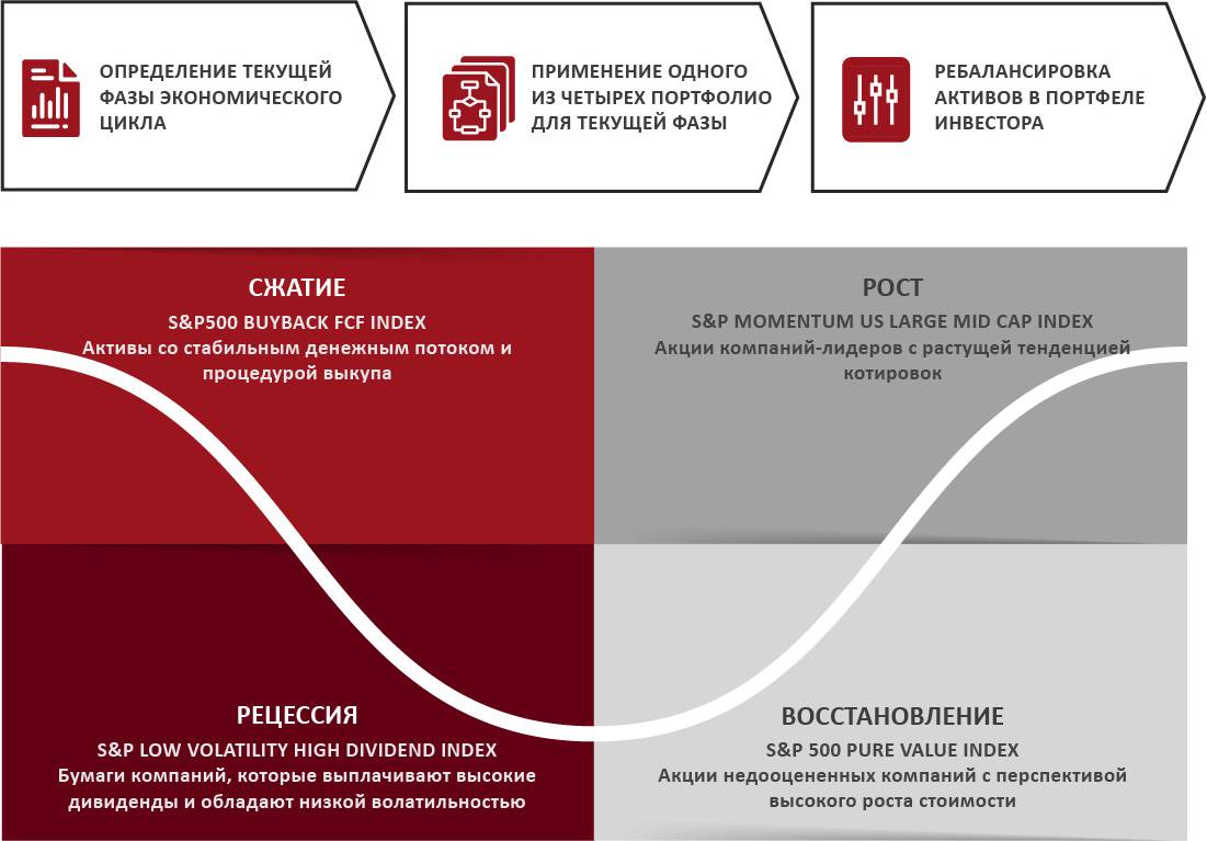 Алгоритм действия S&P Economic Cycle Factor Rotator Index включает регулярный анализ