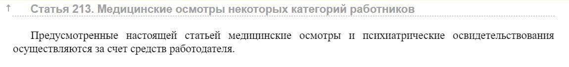 Статья 213 Трудового кодекса РФ «Медицинские осмотры некоторых категорий работников»