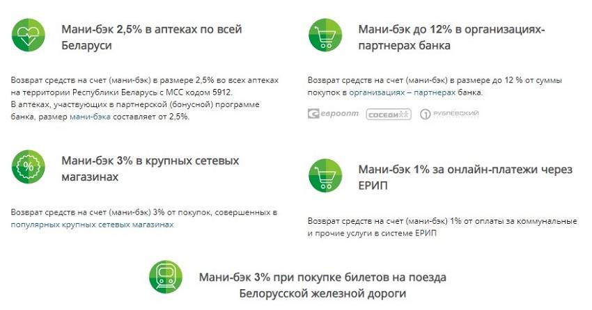 Мани-бэк начисляется 1 раз в месяц, а не после каждой покупки. Обязательное условие при этом – владелец карты должен потратить за истекший период более 230 BYN.