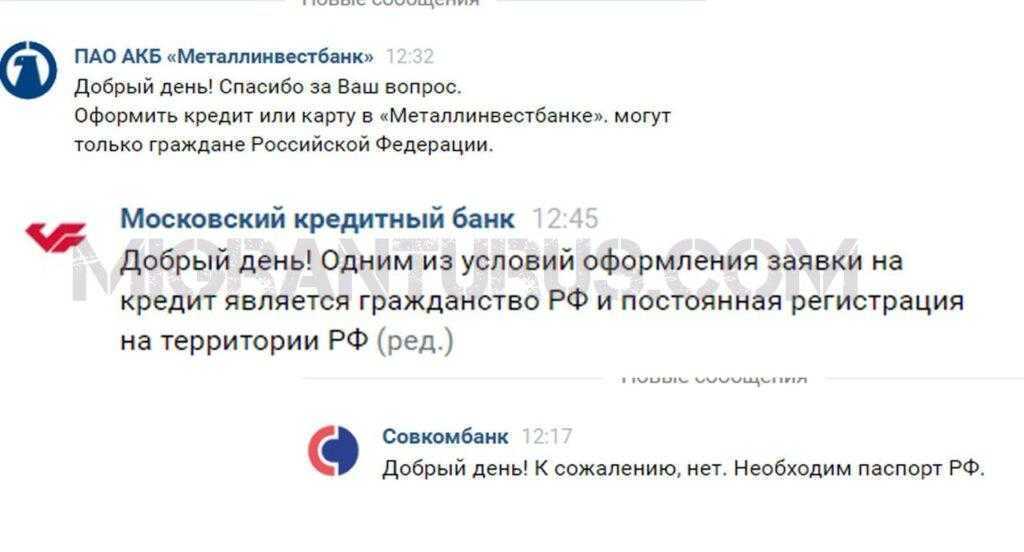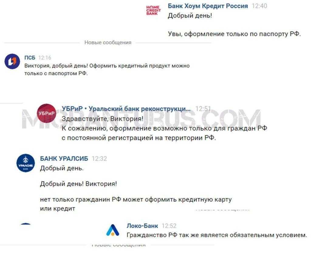 Мы решили сэкономить вам время и составили список банков, в которых, по информации разных источников, якобы, можно получить кредит с видом на жительство. После этого связались с представителями банков и задали им один единственный вопрос — дадут ли кредит наличными или хотя бы кредитку иностранцу с ВНЖ? Ответ, по сути, тоже у всех был один — не дадут, нужно гражданство РФ. Итак, займ без российского паспорта отказались давать в следующих банках: