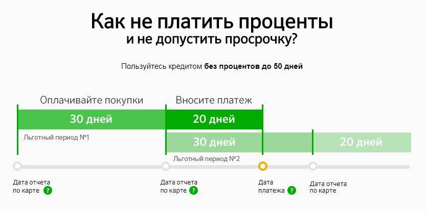 Отсчет периода, по правилам Сбербанка, всегда начинается в один и тот же день. Соответственно, если расплатиться кредиткой в первый день периода, то вернуть деньги можно через 50 дней. Если сделать это в последний день, то через 20.