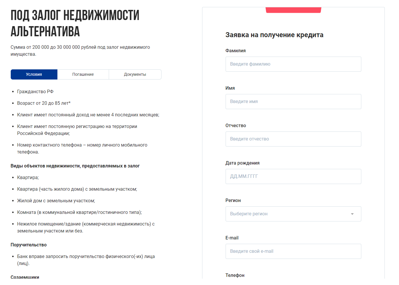 - ссуда выдается под залог недвижимости, отвечающей ряду параметров, установленных банком,