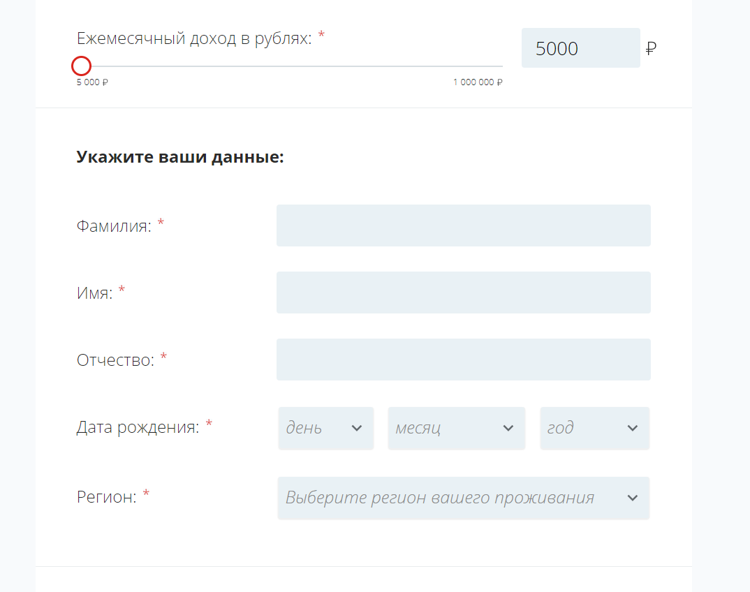 Дополнительная сумма на любые цели | от 7,7 % Квартира Апартаменты ежемес. платежот 68 452 ₽ | до30 млн ₽ | от 0%от ₽ | Выдача на счет Стаж работы от 3 мес. на последнем месте | Отправитьзаявку в банк | |