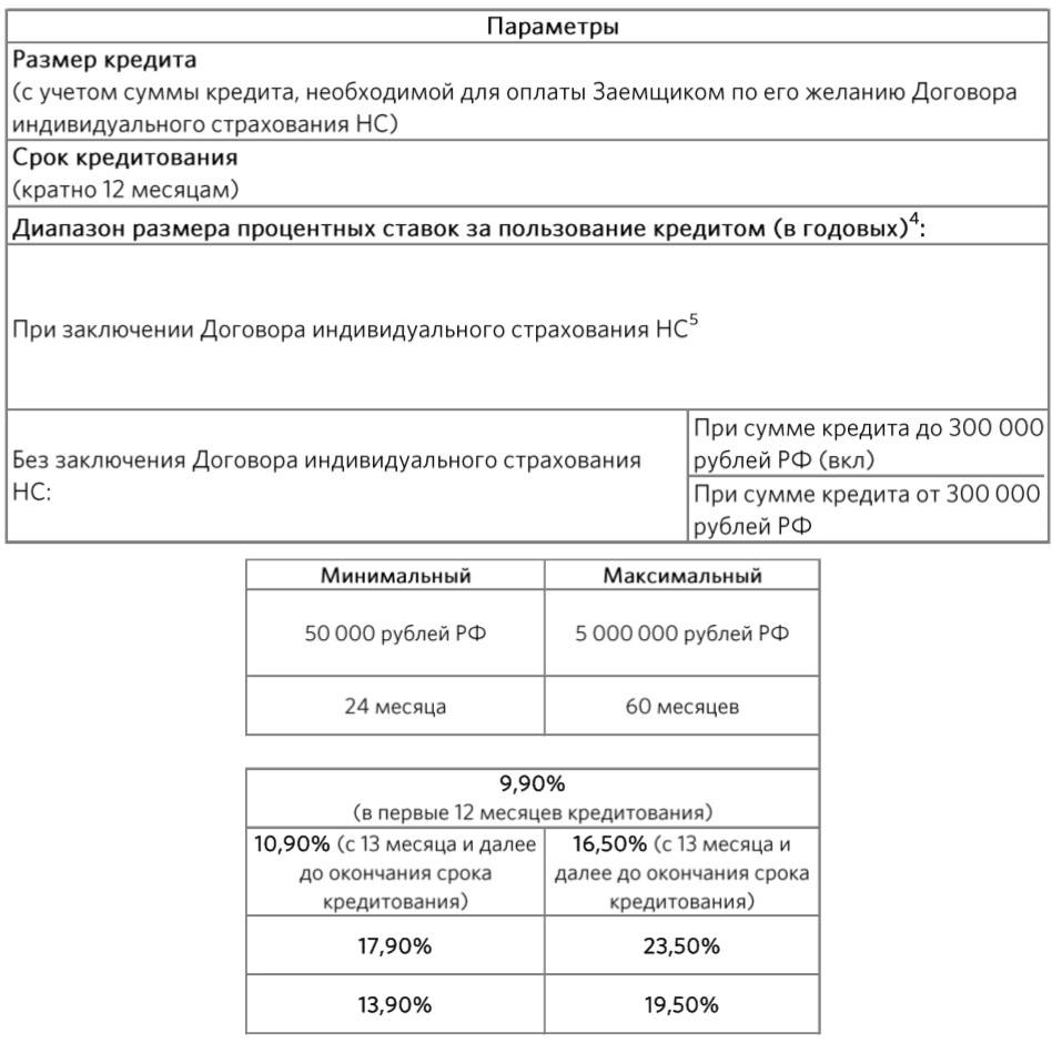 Программа подразумевает получение средств на совершение покупок, туристические поездки или осуществление ремонтных работ. Параметры предложения: