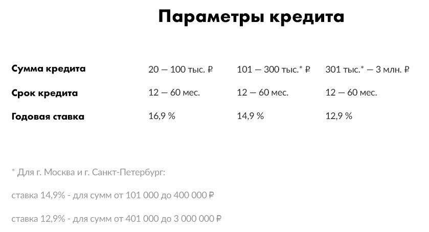 Для жителей Москвы и Санкт-Петербурга ставки, пропорционально размеру кредита, могут немного отличаться.