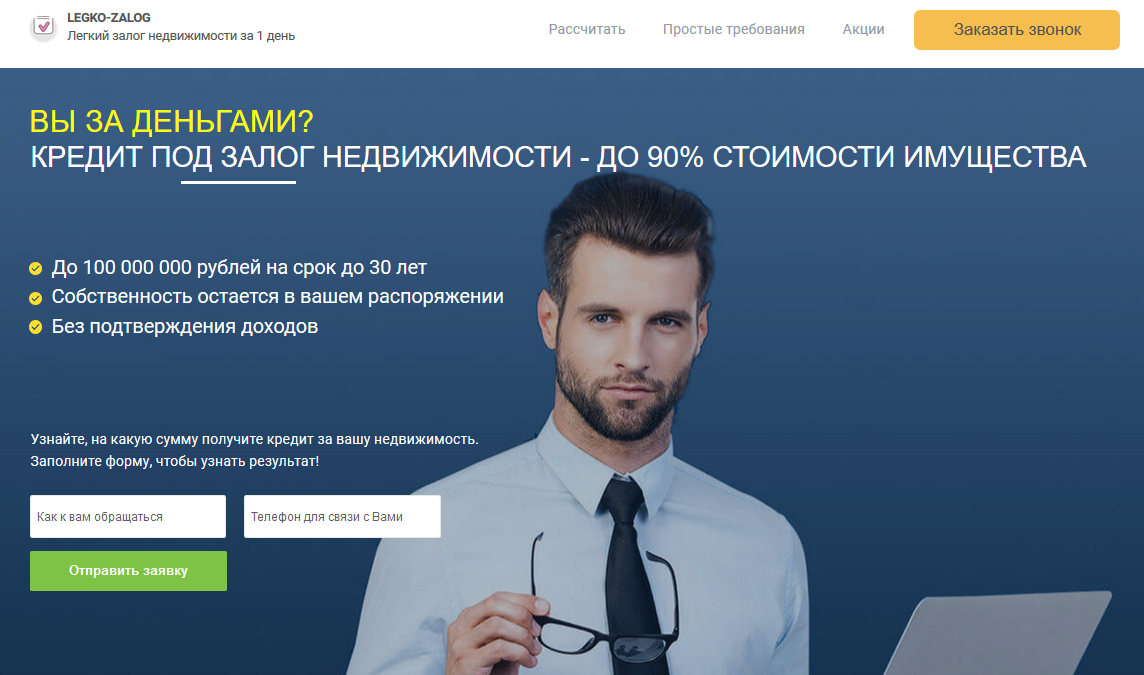 | MYZALOG24 | До 90% | Макс. 90 млн. руб | 1-30 лет | Акция — от 8,5% | Москва, Московская область |