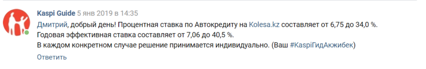 *Процентная ставка банком не афишируется, как и в предыдущем заеме банк озвучивает только переплату по ссуде, но мне удалось найти ответ представителя Каспий, где он озвучил процентные ставки.