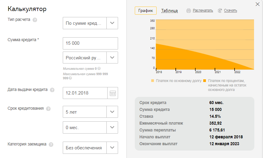 Предварительный расчет по кредиту можно сделать в онлайн-калькуляторе.