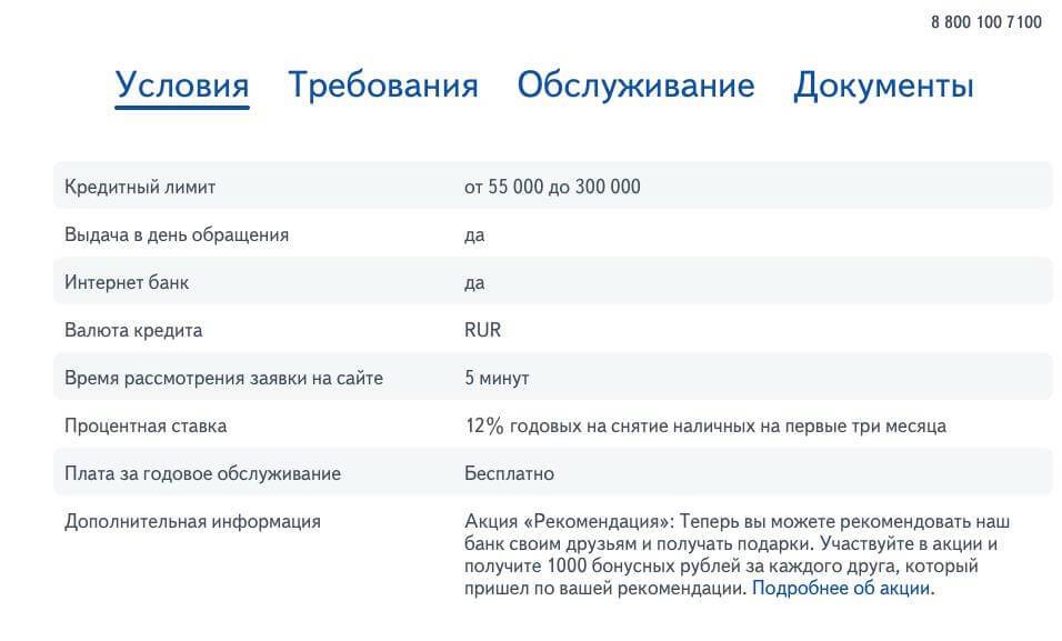 Для начала стоит обратить внимание на сниженный кредитный лимит – здесь он всего 70 000 рублей против 120 000 рублей, указанных на сайте