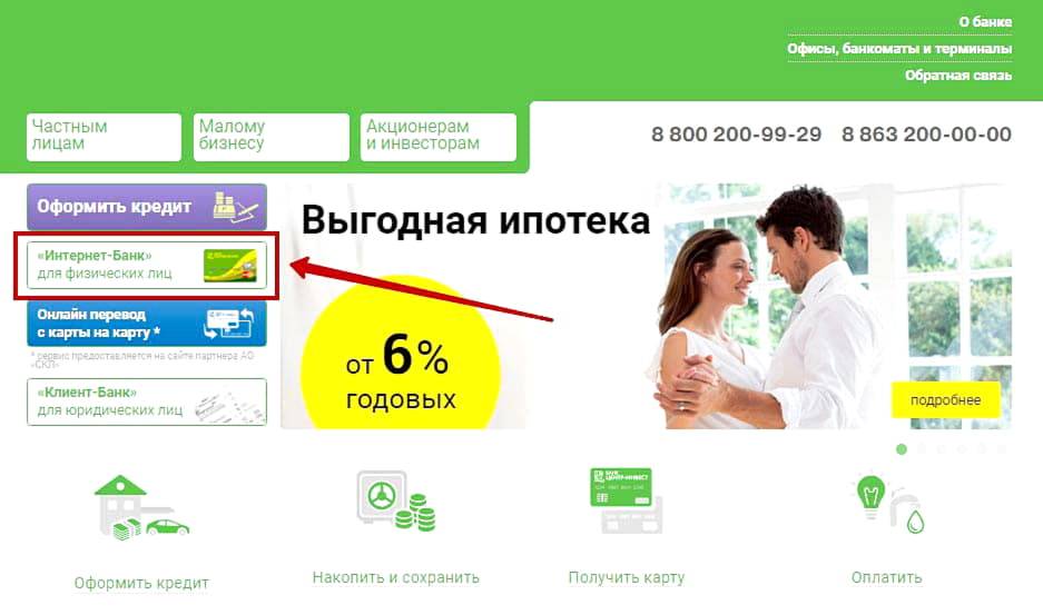 - Проверить через интернет-банк для физических лиц. Переход в сервис осуществляется на официальном сайте финансовой структуры. Потребуется введение логина и пароля.