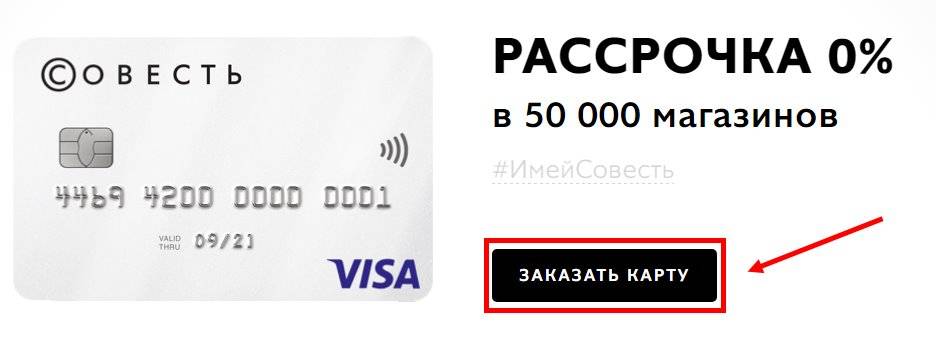 Получить карточку «Совесть» может каждый гражданин России в возрасте от 18 лет. Для подачи заявки нужен только паспорт. Наличие постоянной прописки – не нужно. Также от заемщика не требуются дополнительные документы, подтверждающие занятость или официальный доход. Все это очень сильно облегчает процедуру оформления и делает ее максимальной простой для клиентов.