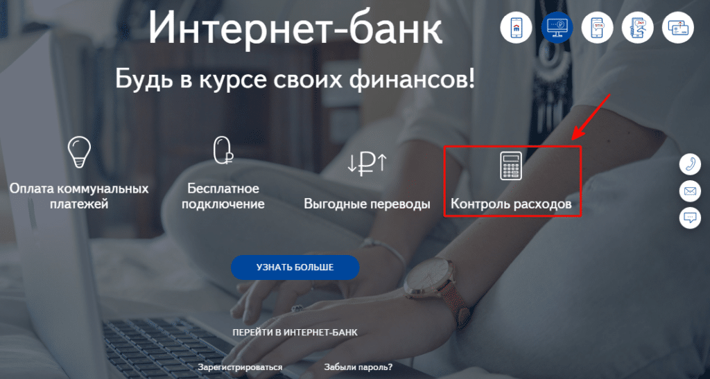 Удобно контролировать расход средств через интернет банк. Услуга абсолютно бесплатная, клиент может воспользоваться полной или мобильной версией сервиса. Понадобится предварительная регистрация на сайте. В дальнейшем для совершения операций понадобится только вход в систему.