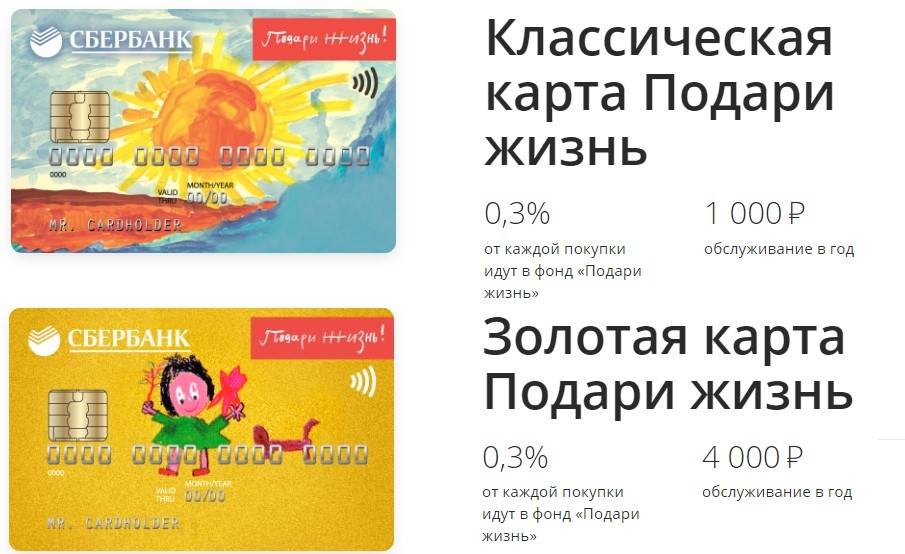 - Классическая и Золотая кобрендинговые карты «Подари жизнь».