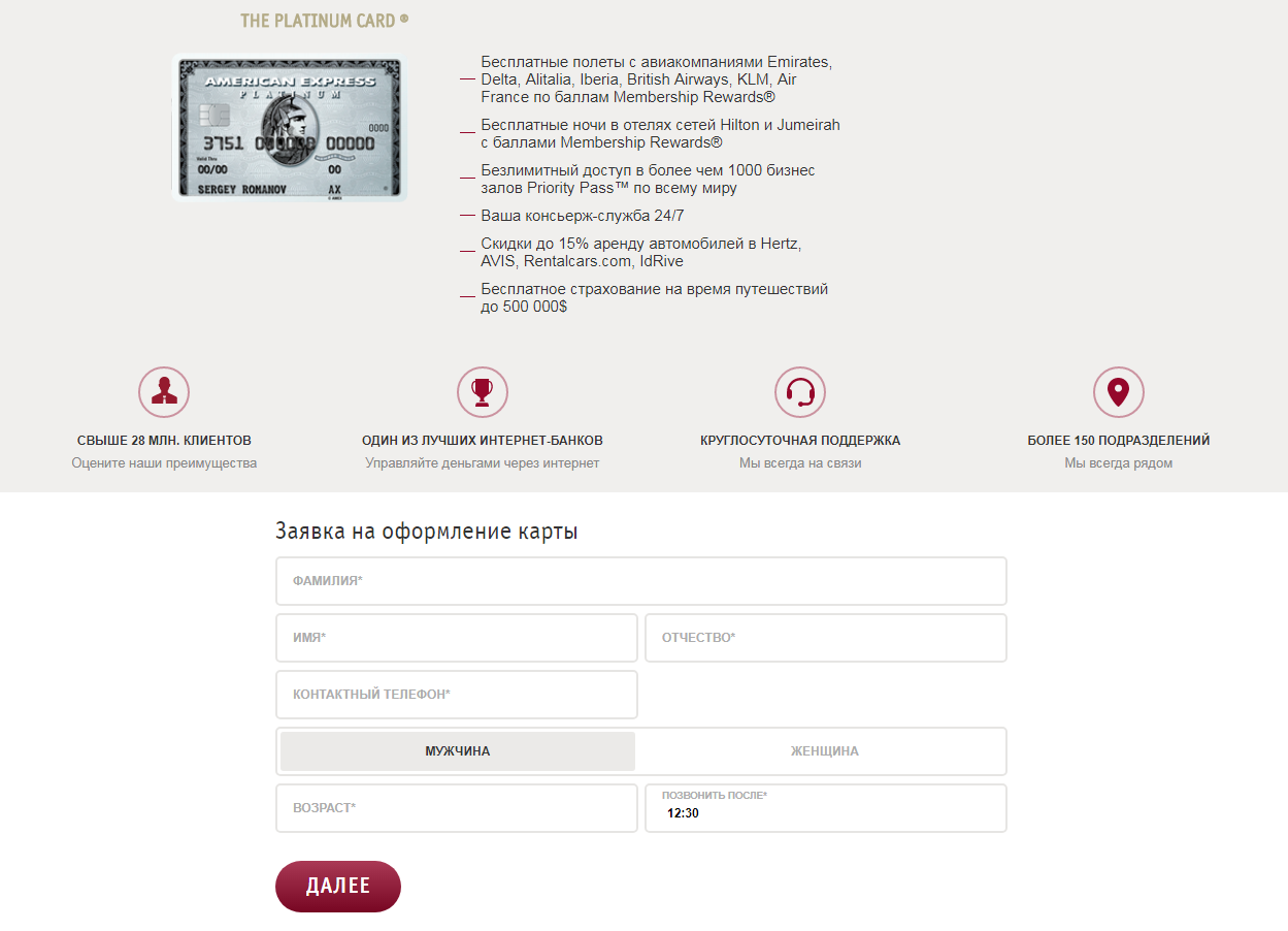 | Стоимость годового обслуживания | British Airways и Miles & More — 10 тыс. р., The Platinum Card — 25 тыс. р. |