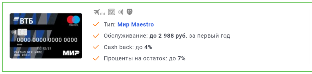 Дебетовая мультикарта «Мир» – Maestro ВТБ