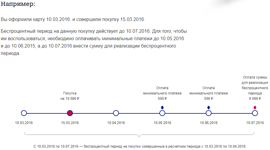 На сайте банка представлена наглядная схема использования заемных средств в беспроцентном льготном периоде.