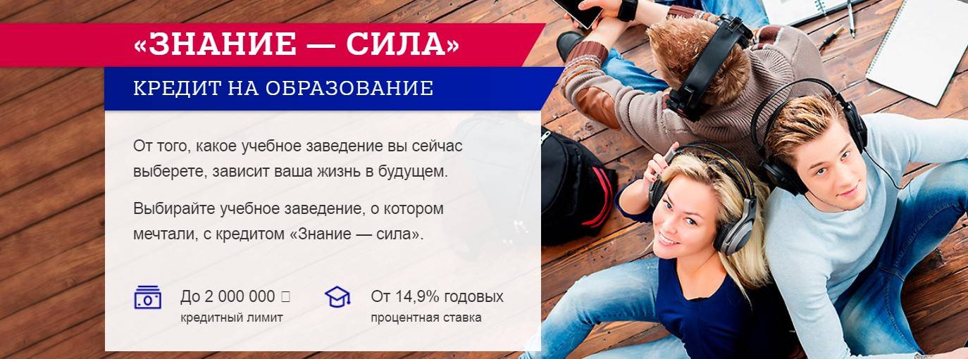 Программа «Знание — сила» дает возможность взять в кредит до 2 млн руб. под 9,9% годовых. Это выгодно, т.к. во время обучения заемщик будет оплачивать только проценты, основной долг можно погасить после окончания вуза.