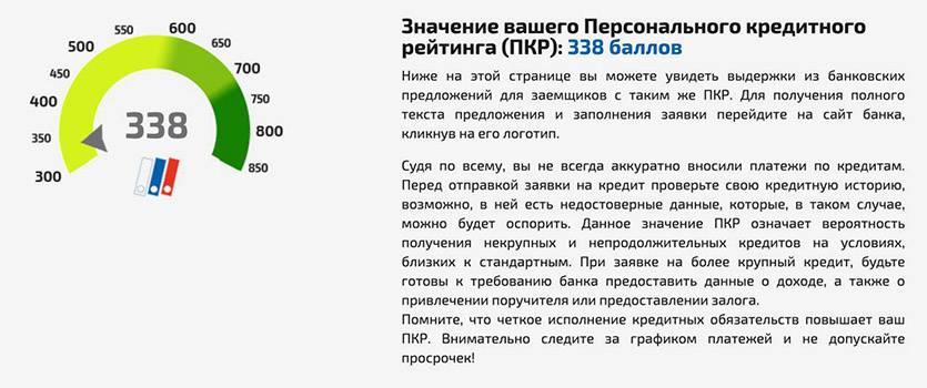 Информация о клиенте берется из базы данных Национального бюро кредитных историй на основании записей кредитной истории. Она позволяет оценить кредитоспособность каждого клиента в диапазоне от 300 до 850 баллов.