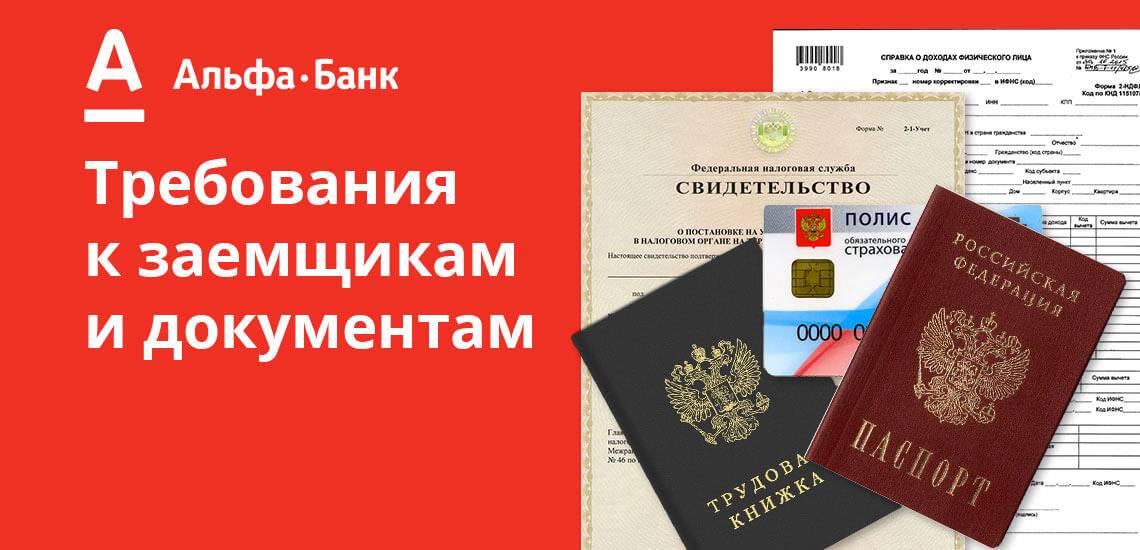Среди требований к заемщикам: возраст старше 21 года, российское гражданство, прописка в городе, где есть представительства Альфа-банка. Обязательным условием является наличие стационарного телефона по адресу, где клиент проживает фактически.