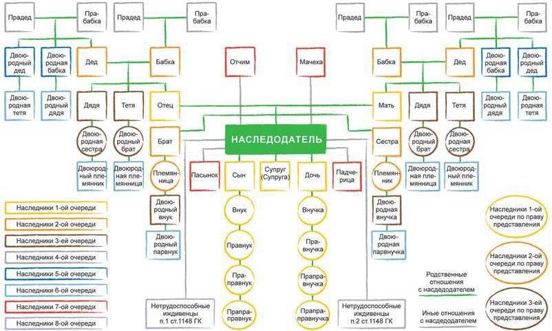 Согласно гражданскому кодексу для принятия имущества умершего в есть восемь очередей наследования: