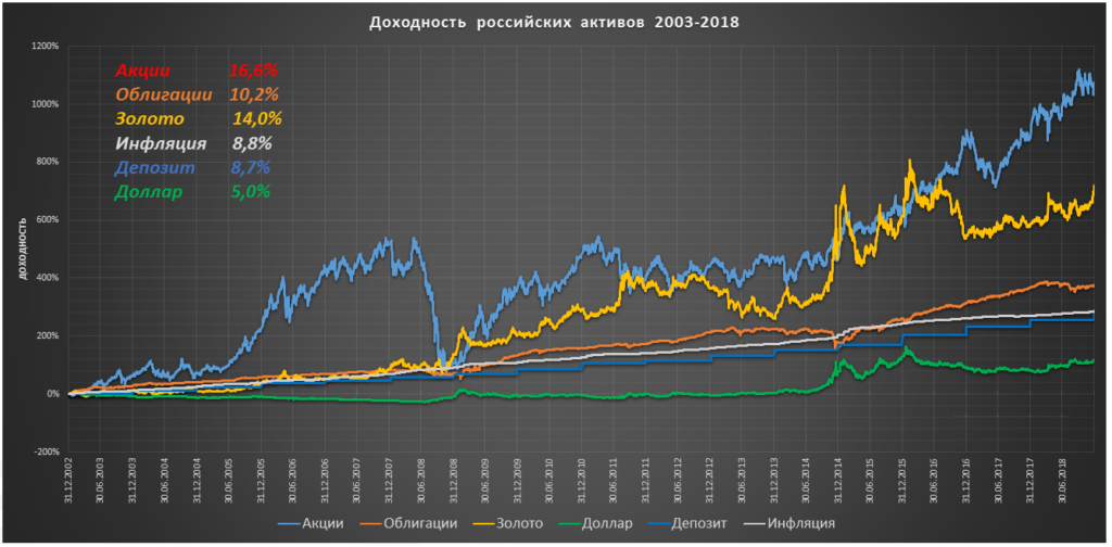 Вложение в акции может принести конечную прибыль, в несколько раз превышающую пассивный прирост средств через депозит за тот же временной период, но рисков здесь больше.