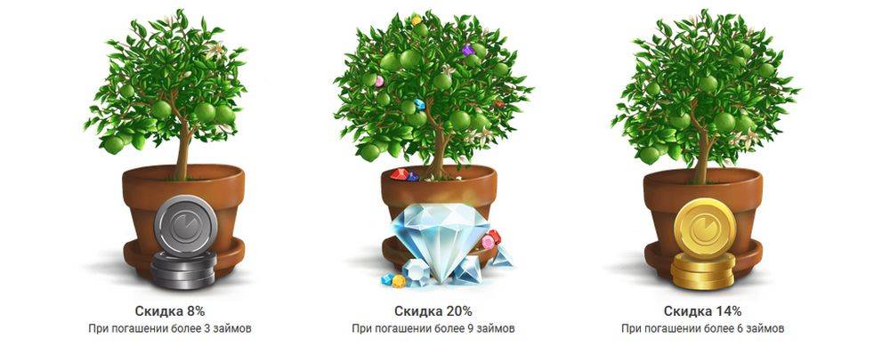 Компания занимается улучшением качества сервиса. Для постоянных клиентов действует специальная программа поощрения, при которой каждый следующий займ будет выгоднее предыдущего. Клиент повышает личный уровень и получает соответствующие скидки.